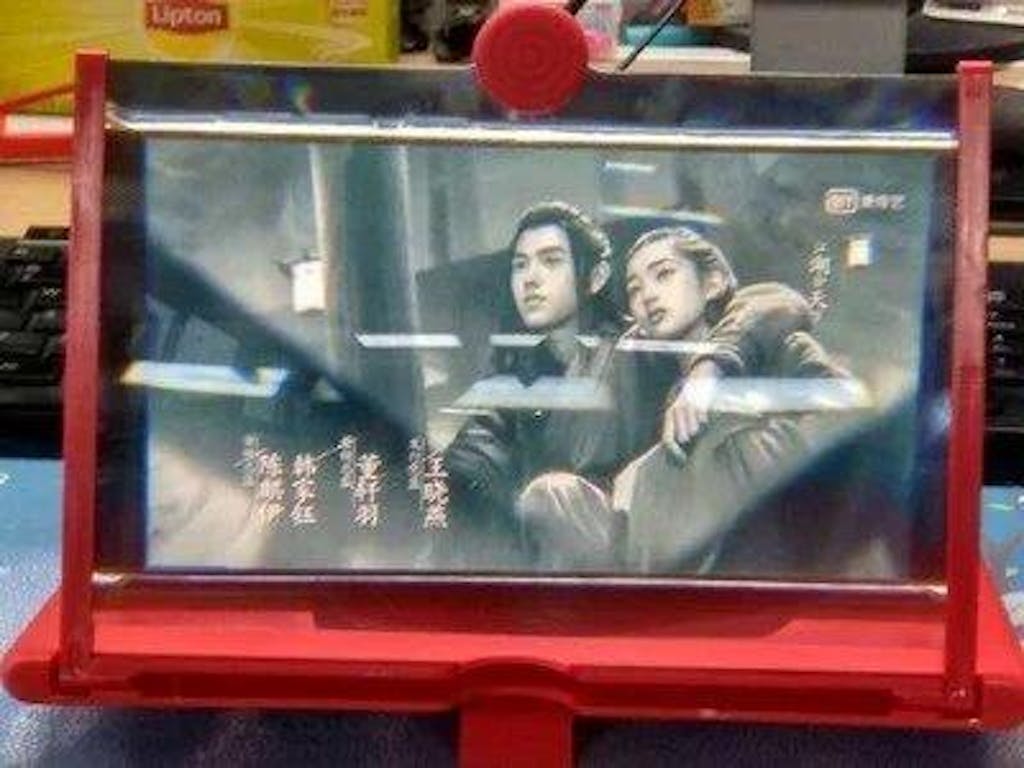 はい。高透過HDレンズにより、スマートフォン画面を最大約3〜4倍に拡大して表示します。